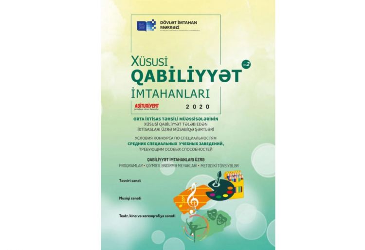 Dövlət İmtahan Mərkəzi (DİM) orta ixtisas təhsili müəssisələrinin xüsusi qabiliyyət tələb edən ixtisaslarına qəbul olmaq istəyənlər üçün “Xüsusi qabiliyyət imtahanları” jurnalının 2020-ci il 2-ci nömrəsini nəşr edib.