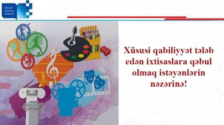 2020/2021-ci tədris ili üçün 9 illik orta təhsil bazasında orta ixtisas təhsili müəssisələrinin xüsusi qabiliyyət tələb edən ixtisaslarına (XQTİ) qəbul olmaq istəyən abituriyentlər qabiliyyət imtahanlarında iştirak etmək üçün 24 iyul - 3 avqust tarixlərində verilən link http://eservices.dim.gov.az/erizetex/qabiliyyet vasitəsilə qeydiyyatdan keçməlidirlər.