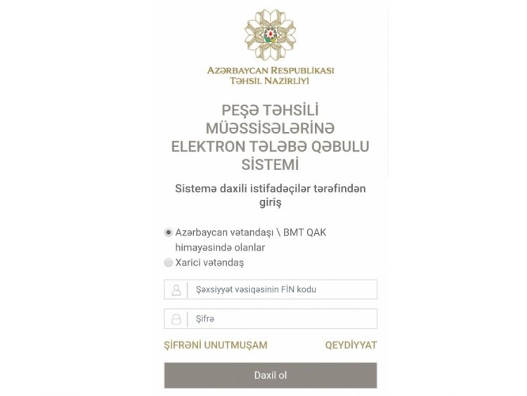 Peşə Təhsili üzrə Dövlət Agentliyindən NUHÇIXAN İnformasiya Agentliyinə bildirilib ki, sənəd qəbulu avqustun 24-dək elektron qaydada həyata keçiriləcək. Peşə təhsili müəssisələrinə qəbul üzrə müsabiqədə iştirak etmək istəyən şəxslər Təhsil Nazirliyinin “Təhsil Mərkəzləşdirilmiş İnformasiya Sistemi”nin Elektron sənəd qəbulu altsistemində (http://qebul.vet.edu.az/) ərizəni doldurmalıdır.