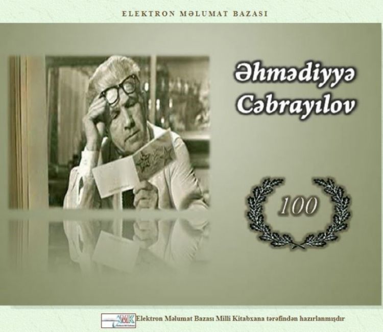 Sentyabr ayının 22-də Azərbaycan xalqının igid övladı, əfsanəvi partizan Əhmədiyyə Cəbrayılovun anadan olmasının 100 illiyi tamam olur. Azərbaycan Respublikası Prezidentinin “Əhmədiyyə Cəbrayılovun 100 illiyinin qeyd edilməsi haqqında” Sərəncamına və Mədəniyyət Nazirliyinin tədbirlər planına uyğun olaraq Milli Kitabxananın əməkdaşları tərəfindən “Əhmədiyyə Cəbrayılov – 100” adlı elektron məlumat bazası hazırlanıb.