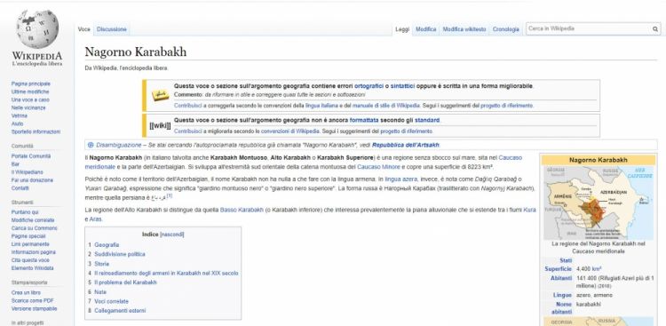 “Vikipediya”nın italyan dili bölməsində Dağlıq Qarabağ haqqında məqalə zənginləşdirilib.