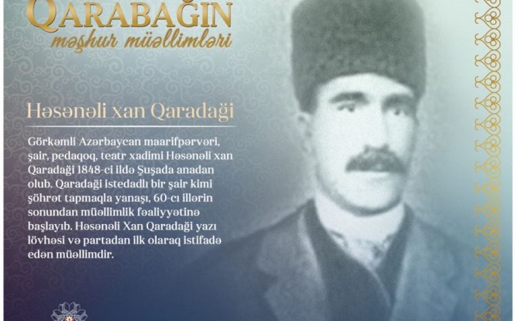 Xatırladaq ki, “Qarabağın məşhur müəllimləri” layihəsi çərçivəsində Qarabağda doğulan və vaxtilə pedaqoji fəaliyyətlə məşğul olan tanınmış şəxslər barədə məlumatlar təqdim olunur. Layihənin məqsədi müzəffər Azərbaycan Ordusunun qələbəsinə sevindiyimiz bu günlərdə Qarabağın məşhur müəllimlərini yad etməkdir.