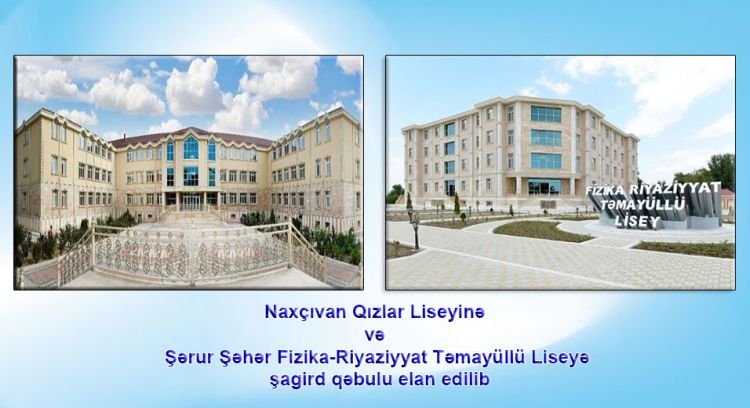Naxçıvan Qızlar Liseyinə və Şərur Şəhər Fizika-Riyaziyyat Təmayüllü Liseyə şagird qəbulu elan edilib