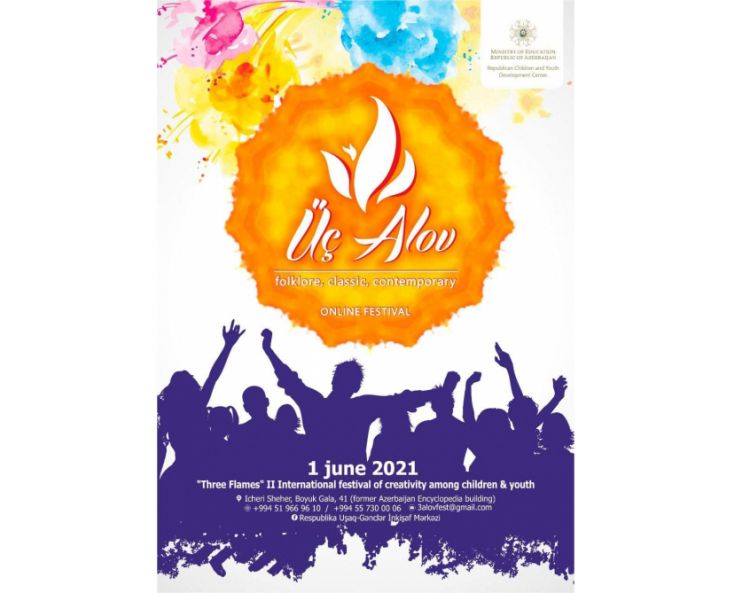 Təhsil Nazirliyinin dəstəyi və Respublika Uşaq-Gənclər İnkişaf Mərkəzinin təşkilatçılığı ilə iyunun 3-dək “Üç alov” uşaq və gənclərin onlayn II Beynəlxalq Folklor, Klassik və Müasir Yaradıcılıq Festivalına start verilib.