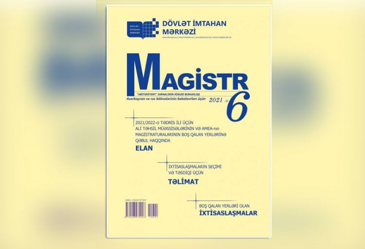 Dövlət İmtahan Mərkəzi (DİM) avqustun 5-dən 11-dək 2021/2022-ci tədris ili üçün Azərbaycan Respublikasının ali təhsil müəssisələrinin və Azərbaycan Milli Elmlər Akademiyasının magistraturalarının boş qalan yerlərinə qəbul olmaq üçün ixtisaslaşma seçimi elan edir.