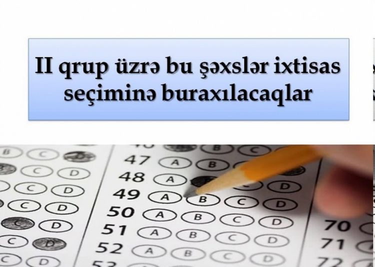 Bu barədə NUHÇIXAN İnformasiya Agentliyinə Dövlət İmtahan Mərkəzindən məlumat verilib. Bildirilib ki, bu qrupda subbakalavrların da şanslarını yüksək qiymətləndirmək olar. Amma II ixtisas qrupunda da keçid balları müxtəlif ixtisaslar üzrə fərqlənir. Məsələn, ötən il müəyyən ixtisasların dövlət sifarişli yerlərinə 200 bal ilə də qəbul olmaq mümkün idi. Amma maliyyə ixtisasının dövlət sifarişli yerlərinə 500 baldan aşağı nəticə göstərən qəbul oluna bilməzdi. Beləliklə, nəzərə alınmalıdır ki, abituriyentin balı və seçmək istədiyi ixtisasın ötənilki keçid balı arasında kəskin fərq olmamalıdır.