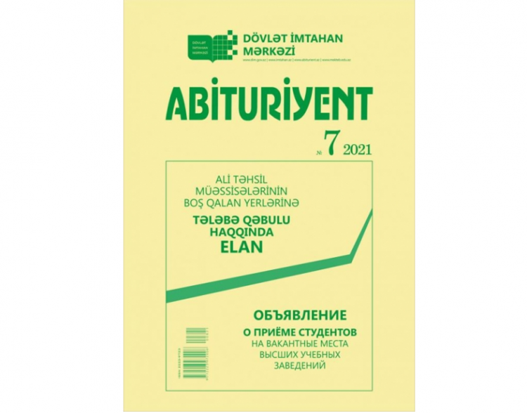 Dövlət İmtahan Mərkəzi “Abituriyent” jurnalının 7-ci nömrəsini nəşr edib.