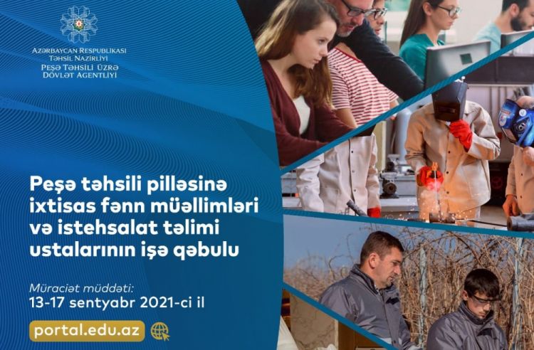 2021/2022-ci il tədris ili üçün ilk dəfə olaraq Təhsil Nazirliyi sisteminə daxil olan peşə təhsil müəssisələrinə ixtisas fənn müəllimlərinin və istehsalat təlimi ustalarının mərkəzləşmiş imtahanla işə qəbulu aparılacaq.