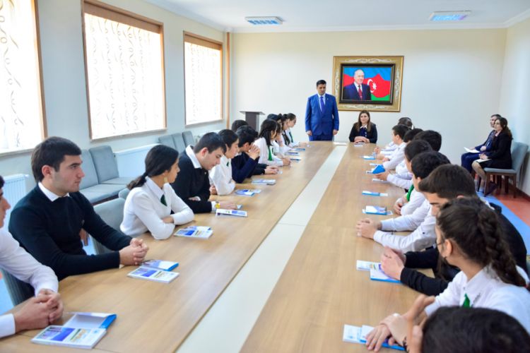 Dərsdə iştirak edən şagirdlərə universitetin tanıtım bukletləri təqdim olunub.