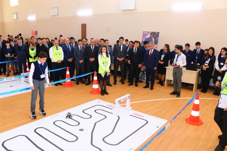 Nazir məktəbli komandaların “Xətt izləyən robot” yarışması üçün arduino, microbit və lego dəstlərindən hazırladıqları robotlarla tanış olub, şagirdlər robot layihələri haqqında məlumat veriblər. Sonra yarışa start verilib, komandalar robotlarla müxtəlif yol xətti üzərində robotlarını işə salıblar.