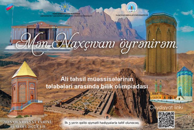 NUHÇIXAN İnformasiya Agentliyi xəbər verir ki, Naxçıvan Dövlət Universitetində Yeni Azərbaycan Partiyası Universitet şəhərciyi ərazi ilk partiya təşkilatı “Mən Naxçıvanı öyrənirəm” tələbələrarası bilik olimpiadası elan edir.