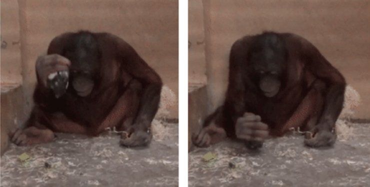 “Aparılmış tədqiqatlar nəticəsində məlum olub ki, oranqutanlar daş silahlardan vəhşi təbiətdə istifadə etmirlər. Lakin onlar azad mühit şəraitində yaşamırlarsa, daş silahlardan istifadə edə bilərlər. Biz düşünürük ki, oranqutanlar vəhşi təbiətdə daş silahlara ehtiyac duymadıqları üçün onlardan istifadə etmirlər. Lakin bu, onların bu cür bacarığa sahib olmadıqları mənasını vermir. Məlumdur ki, oranqutanlar böyük ölçülərə sahibdirlər və onlar ağac meymunları hesab edilirlər. Onlara ağacların hündür nöqtələrində daş silahlar lazım deyil”, - deyə mütəxəssislər qeyd ediblər. Norveçdəki zooparkda aparılmış təcrübədə iştirak etmiş oranqutanlar daşdan istifadə ediblər. Lakin onlar daşı sadəcə olaraq qəfəsin divarlarına və döşəməsinə vurublar. Onlar silisum plastinin əldə edilməsi üçün bir daşı digərinə vurmayıblar. İkinci təcrübə çərçivəsində meymunlara hazır plastin verilib və onlar həmin plastin vasitəsilə qida konteynerini kəsərək onun daxilindən qidanı çıxarıblar. Mütəxəssislərin sözlərinə əsasən bu, ilk haldır ki, öncədən təlimatlandırılmamış oranqutan əşyaları kəsmək bacarığını sərgiləyib.