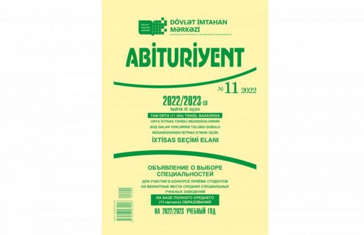 Dövlət İmtahan Mərkəzi (DİM) “Abituriyent” jurnalının 11-ci nömrəsini nəşr edib.