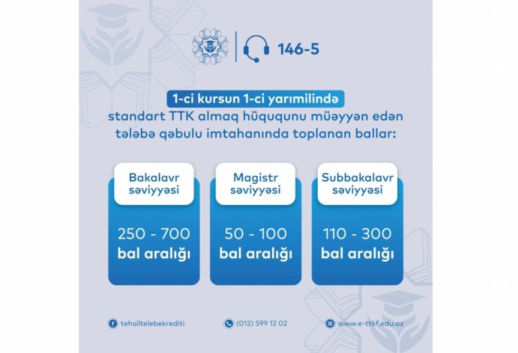 Təhsil Tələbə Krediti Fondu birinci kursun birinci yarımilində standart təhsil tələbə krediti almaq hüququnu müəyyən edən qəbul imtahanı ballarını açıqlayıb.
