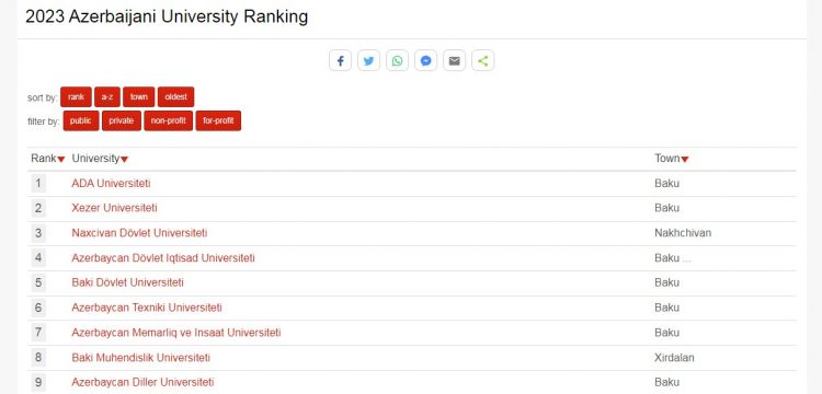 Qeyd edək ki, 2005-ci ilin may ayından etibarən ildə iki dəfə nəşr olunan uniRank akkreditasiya olunan ali təhsil müəssisələrinin veb populyarlığı üzrə təhlilini ehtiva edən beynəlxalq ali təhsil direktoriyası və axtarış sistemidir. Reytinq dünya üzrə 13.900 universitet və kolleci əhatə edir.