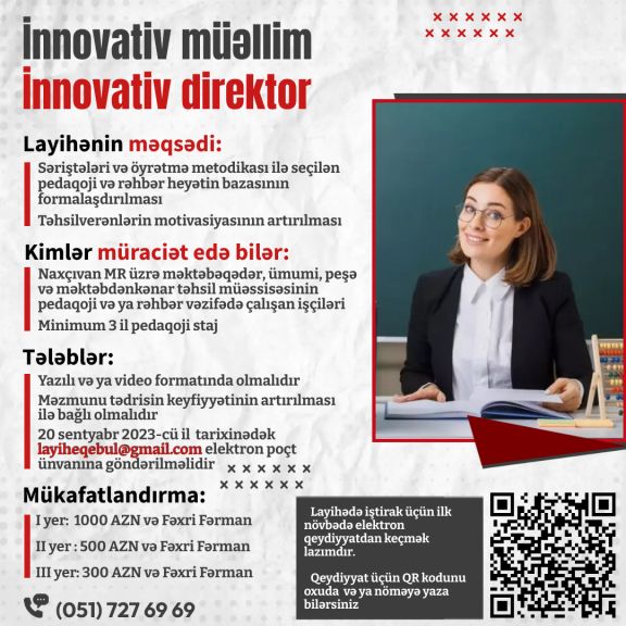 Qeyd edək ki, layihəyə minimum 3 il pedaqoji staja malik hazırda Naxçıvan Muxtar Respublikası üzrə ümumi, məktəbəqədər, peşə və məktəbdənkənar təhsil müəssisələrində pedaqoji və ya rəhbər vəzifədə çalışan şəxslər müraciət edə bilərlər.
