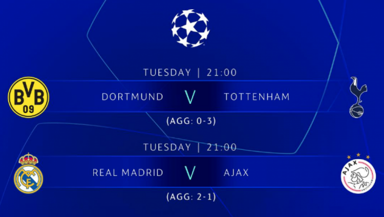 NUHÇIXAN xəbər verir ki, ilk oyun günündə dörddəbir final mərhələsinin ilk iki iştirakçısı müəyyənləşəcək. Almaniyanın “Borussiya Dortmund” klubu doğma meydanda İngiltərənin “Tottenhem” komandasını qəbul edəcək. “Real Madrid” isə Hollandiyanın “Ayaks” klubunu qəbul edəcək. Hər iki görüş Bakı vaxtı ilə saat 00:00-da başlayacaq.