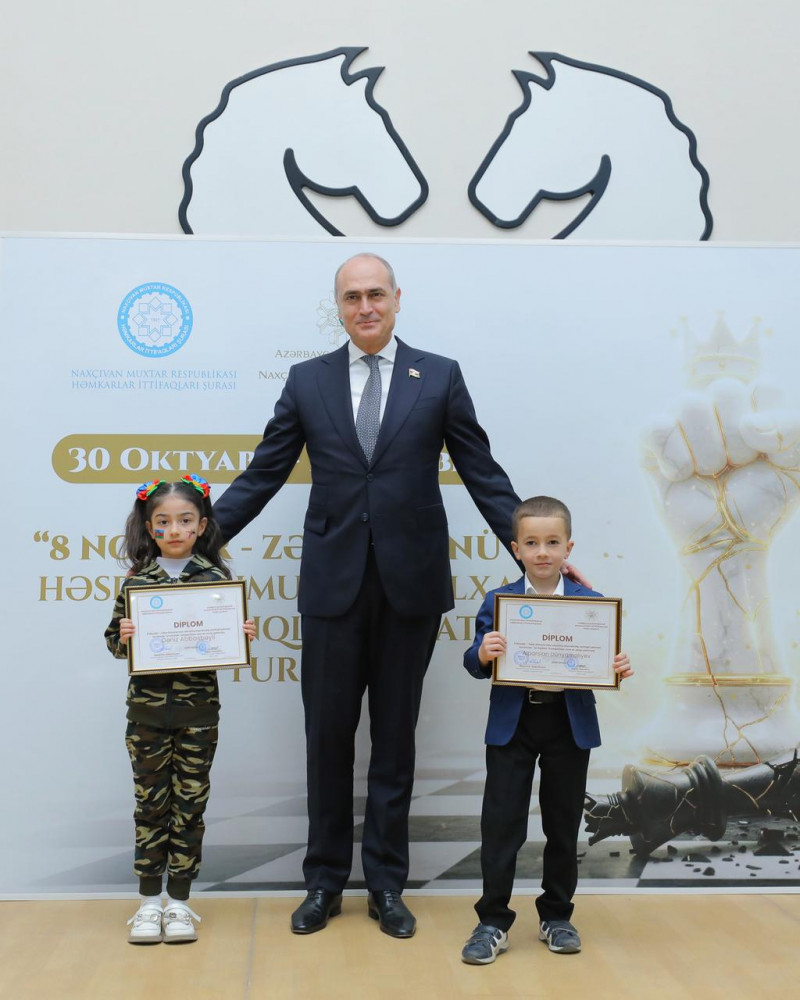 Sonra Naxçıvan Muxtar Respublikası Ali Məclisi sədrinin birinci müavini, Azərbaycan Şahmat Federasiyasının vitse-prezidenti Bəxtiyar Məmmədov, Naxçıvan Muxtar Respublikasının təhsil naziri Elxan Nəcəfov və Azərbaycan Həmkarlar İttifaqları Konfederasiyasının sədr müavini, Naxçıvan Muxtar Respublikası Həmkarlar İttifaqları Şurasının sədri Qəzənfər Abdullayev qalib şahmatçılara və turnirin hakimlərinə mükafatlarını təqdim ediblər.