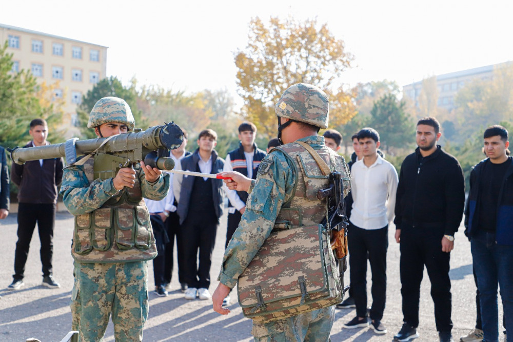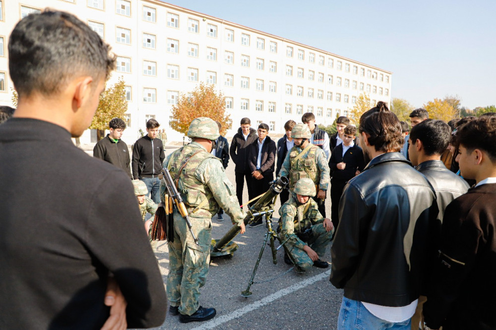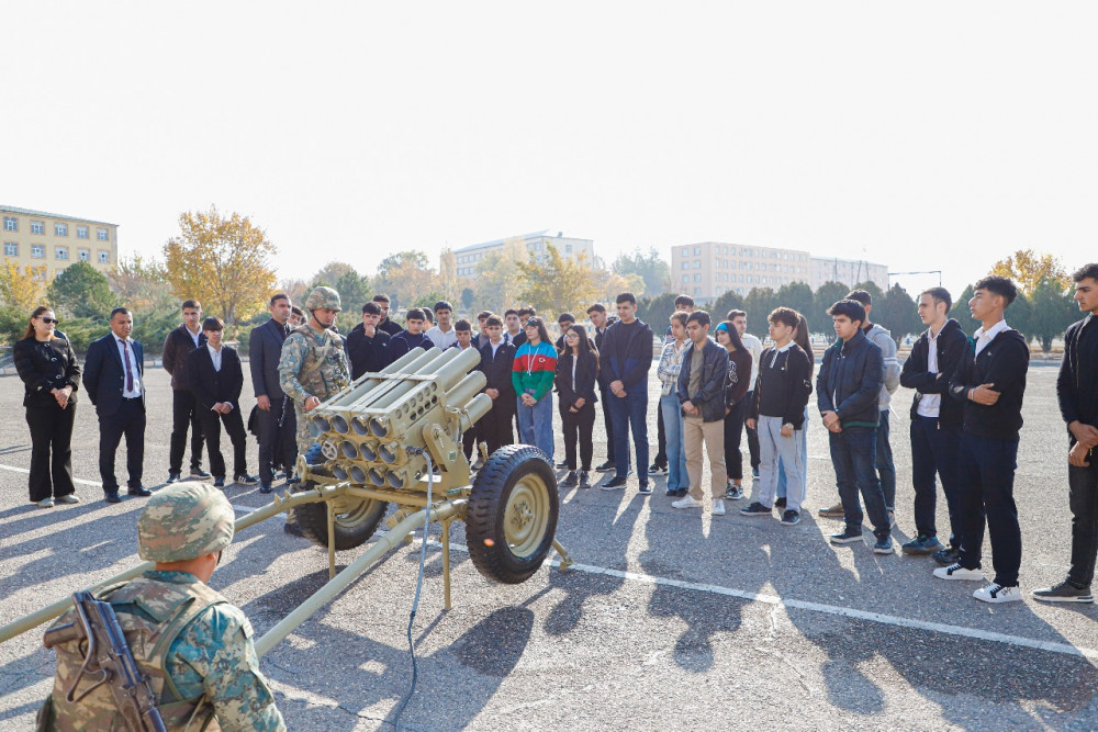Görüş çərçivəsində gənclər əvvəlcə hərbçilərimizin əlbəyaxa döyüş və fiziki hazırlıq elementlərindən ibarət nümunəvi çıxışlarını xüsusi maraqla izləyiblər. Daha sonra hərbi texnika və sursatlara baxış təşkil olunub və silahların texniki xüsusiyyətləri barədə geniş məlumat verilib.