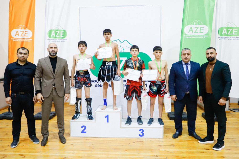 NUHÇIXAN xəbər verir ki, Naxçıvan şəhərində “Konstitusiya və Suverenlik İli”nə həsr olunmuş kadetlər, yeniyetmələr və gənclər arasında kikboksinq üzrə Naxçıvan Muxtar Respublika birincilyi keçirilib. Yarışda 7 klubdan 120-ə yaxın idmançı ümumilikdə 16 dəst mükafat uğrunda mübarizə aparıb.