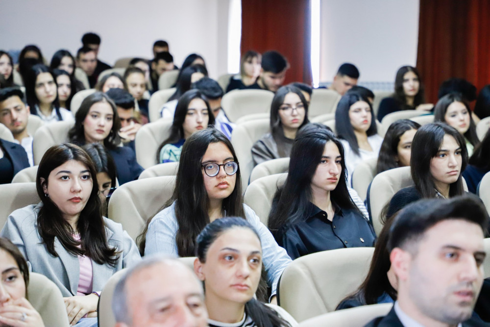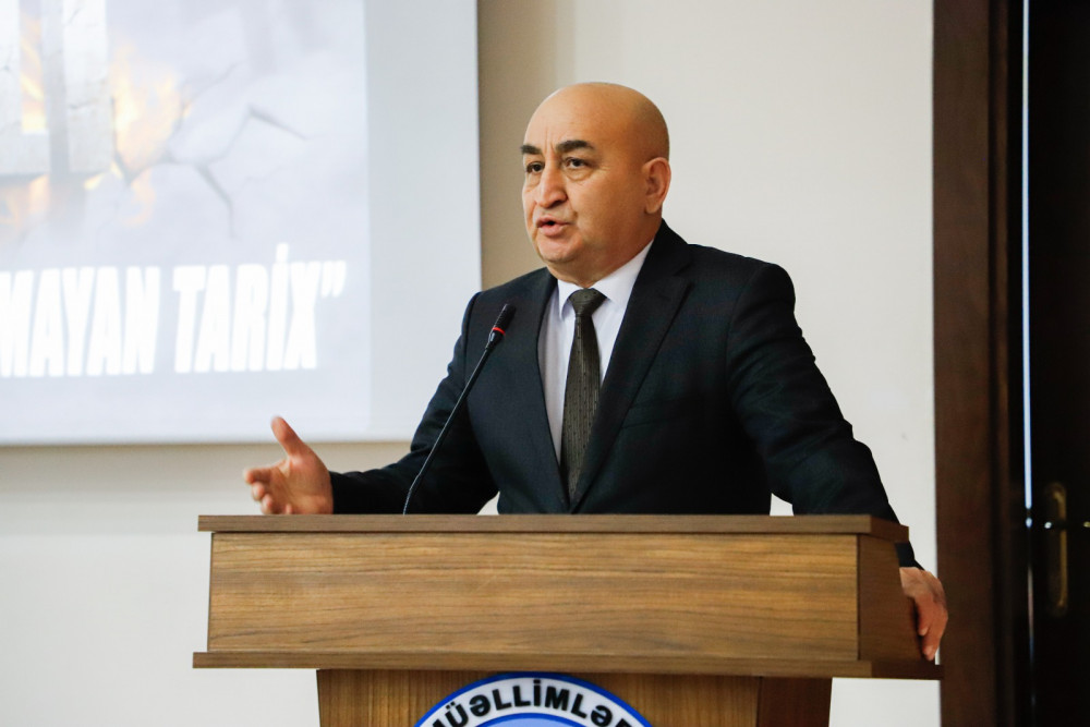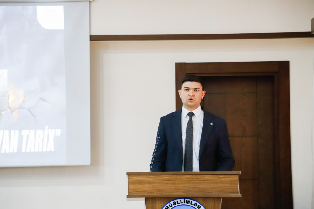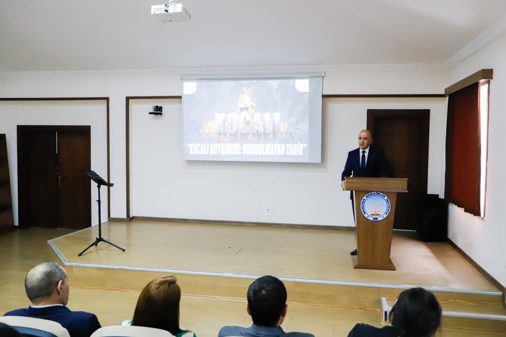 Daha sonra ümumi işlər üzrə prorektor Xəyal Camalov “Xocalı soyqırımı – Dünyanın faciəsi, bu günün mübarizəsi”, Humanitar və ictimai fənlər kafedrasının müəllimi Altay Cəfərli isə “Xocalı – Milli yaddaşımızın sönməyən alovu” mövzularında çıxış ediblər.