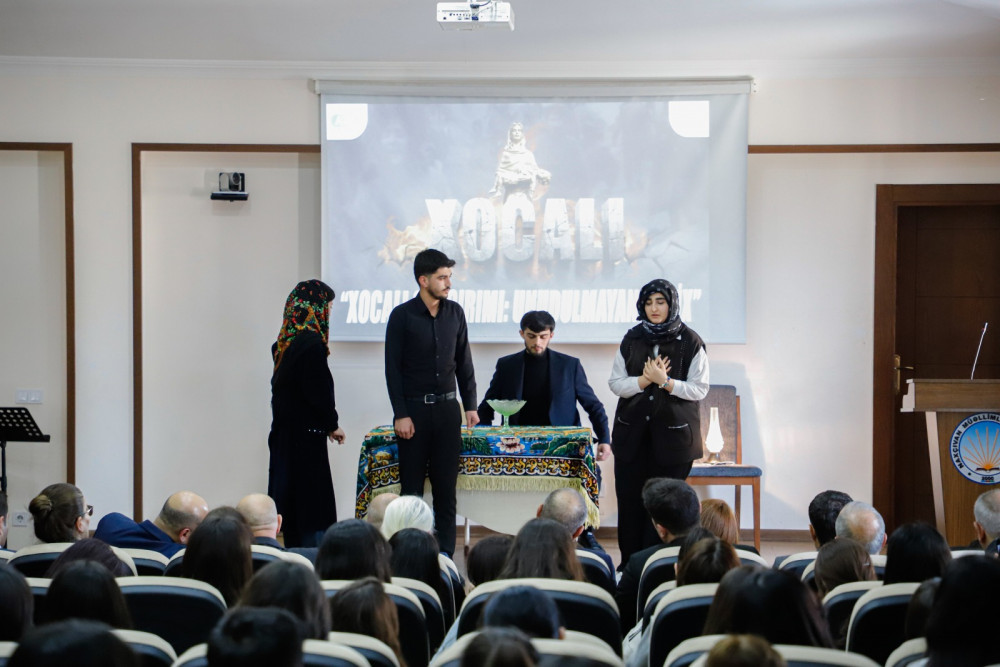 Tədbir çərçivəsində Xocalı soyqırımına həsr olunmuş videoçarx nümayiş etdirilib. Bədii hissədə tələbələr tərəfindən şeirlər səsləndirilib, “Xocalıdan doğan Zəfər” adlı ədəbi-bədii kompozisiya təqdim olunub.