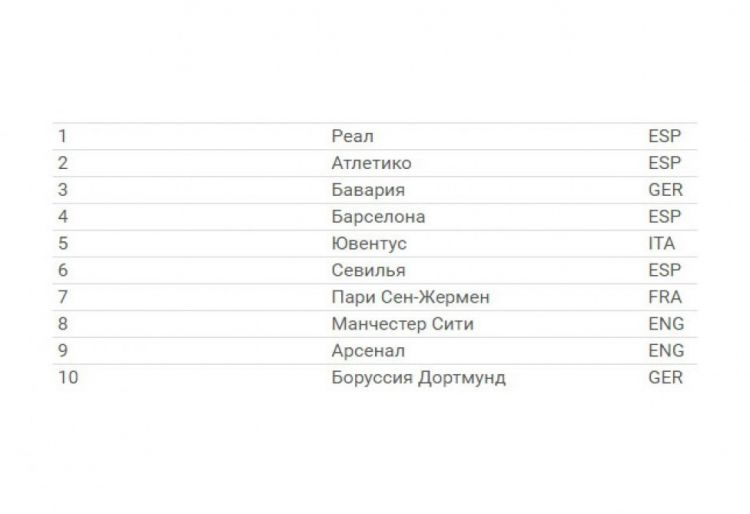 NUHÇIXAN UEFA.com səhifəsinə istinadla xəbər verir ki, “Real Madrid” (162.000 xalla) ardıcıl beşinci ildir birinci yerdəki mövqeyini qoruyub. UEFA Avropa Liqasında qalibiyyətə görə, “Atletiko Madrid” (140.000) iki pillə irəliləyərək ikinci olub. “Bavariya” (135.000) və “Barselona” (132.000) hərəsi bir pillə geriləyərək üçüncü və dördüncü yerlərdə qərarlaşıblar. İlk beşliyi isə “Yuventus” (126.000) klubu tamamlayıb.