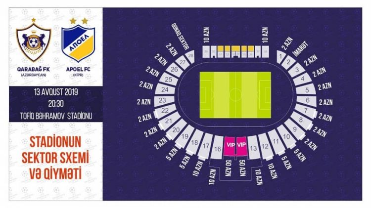 UEFA Çempionlar Liqasının 2019-2020-ci il mövsümünün üçüncü təsnifat mərhələsi çərçivəsində Ağdamın “Qarabağ” və Kiprin “APOEL” klubları arasında avqustun 13-də Bakıda keçiriləcək cavab matçına indiyədək 8 min bilet satılıb.