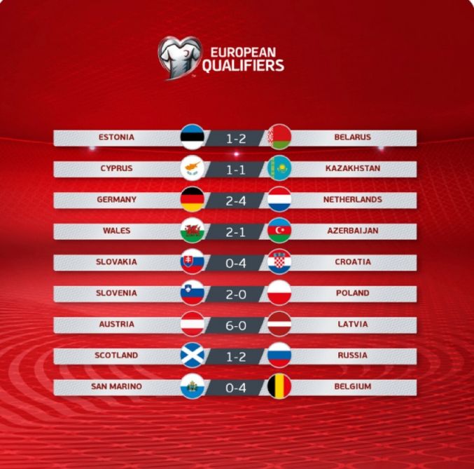 Futbol üzrə 2020-ci il Avropa çempionatının seçmə mərhələsində 5-ci turun 9 oyunu keçirilib.