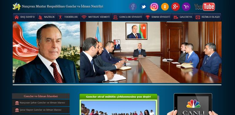 Naxçıvan Muxtar Respublikası Gənclər və İdman Nazirliyinin fəaliyyətinin təkmilləşdirilməsi, gənclər və idman sahəsində həyata keçirilən tədbirlərin daha geniş işıqlandırılması məqsədilə yeni www.naxgin.az saytı yaradılıb.