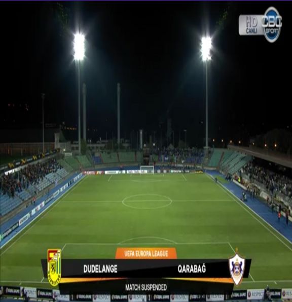 UEFA Avropa Liqasında qrup mərhələsinin II turu çərçivəsində keçirilən “Düdelanj”- "Qarabağ” oyunu dayandırılıb.