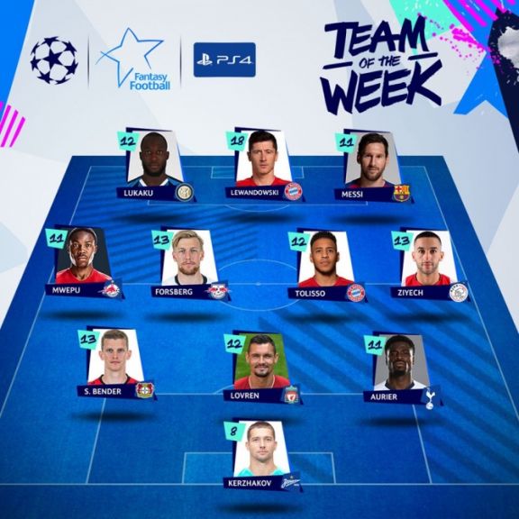 Rəmzi heyətdə Aleksandr Kerjakov (“Zenit”, Rusiya), Deyan Lovren (“Liverpul”, İngiltərə), Serge Aurier (“Tottenham”, İngiltərə), Sven Bender (“Bayer Leverkuzen”, Almaniya), Enok Mvepu (“Zaltsburq” Avstriya), Emil Forsberq (“Leypasiq”, Almaniya), Korentin Tolisso (“Bavariya”, Almaniya), Hakim Ziyeş (“Ayaks”, Niderland), Romelu Lukaku (“İnter”, İtaliya), Lionel Messi (“Barselona”, Kataloniya) və Robert Levandovski (“Bavariya”, Almaniya) yer alıblar.