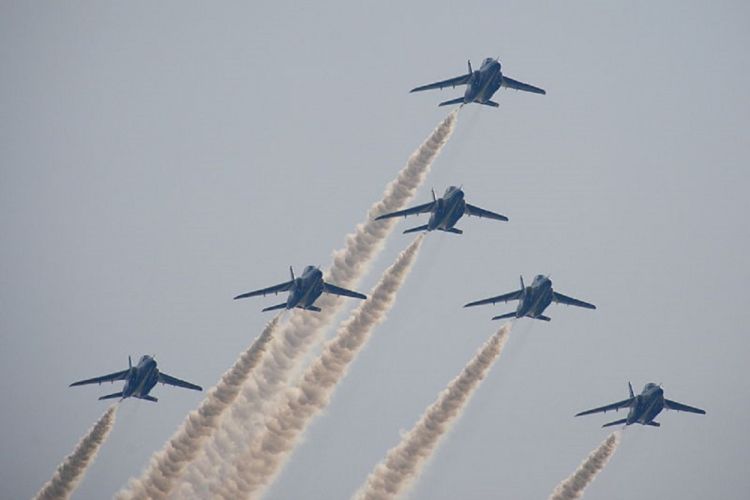 Yaponiya özünümüdafiə qüvvələrinin “Blue Impulse” aviasiya pilotaj qrupu Olimpiya məşəlini qarşılamaq üçün məşqlərə başlayıb.