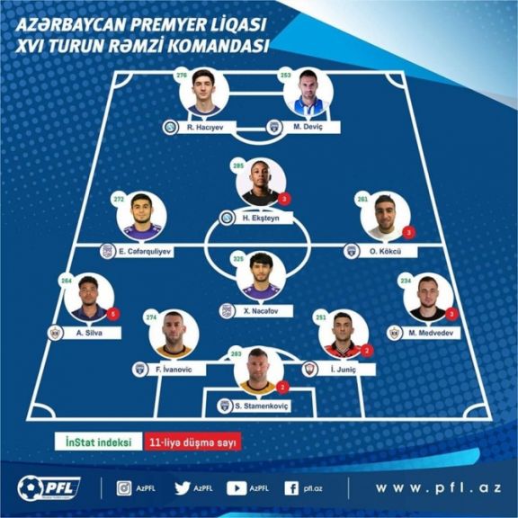 Fevralın 10-da futbol üzrə Azərbaycan Premyer Liqasında XVI turun rəmzi komandası müəyyənləşib.