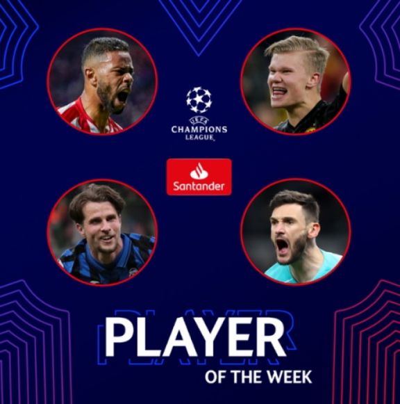 NUHÇIXAN UEFA-nın saytına istinadla xəbər verir ki, qitənin ən nüfuzlu klub turnirinin səkkizdəbir final mərhələsi çərçivəsində keçirilən oyunlara görə həftənin ən yaxşı futbolçusu adına Erlinq Holland (“Borussiya Dortmund”, Almaniya), Renan Lodi (“Atletiko Madrid”, İspaniya), Hans Hatebor (“Atalanta”, İtaliya) və Huqo Loris (“Tottenhem”, İngiltərə) iddialıdırlar.