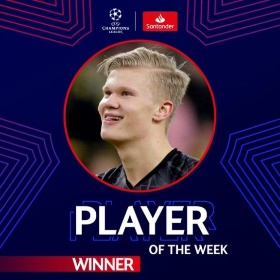 NUHÇIXAN UEFA-nın saytına istinadla xəbər verir ki, Almaniyanın “Borussiya Dortmund” klubunun hücumçusu Erlinq Haaland səsvermə nəticəsində həftənin ən yaxşı futbolçusu adına layiq görülüb.
