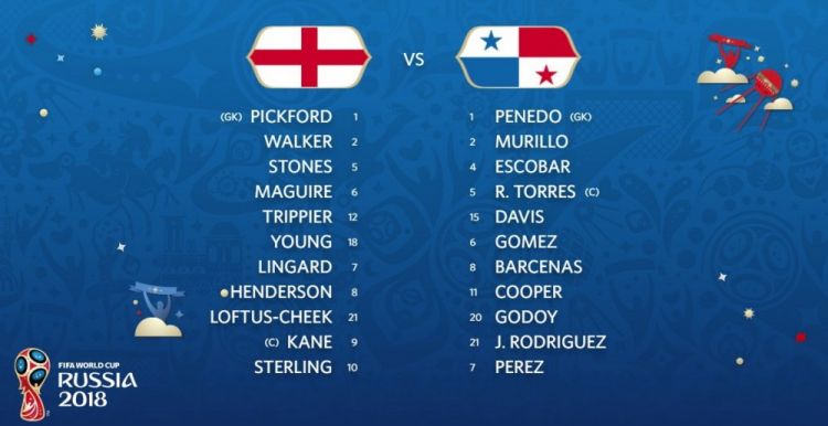 NUHÇIXAN xəbər verir ki, “Nijniy Novqorod Arena”da oynanılan görüşdə ingilislərin start heyətində meydana Cordan Pikford, Kayl Uoker, Con Stounz, Hari Maqayer, Kiran Trepyer, Eşli Yanq, Cordan Henderson, Cesi Linqard, Ruben Loftus-Cik, Rəhim Sterlinq, Hari Keyn çıxıblar. Komandanın baş məşqçisi Qaret Sautqeytdi.