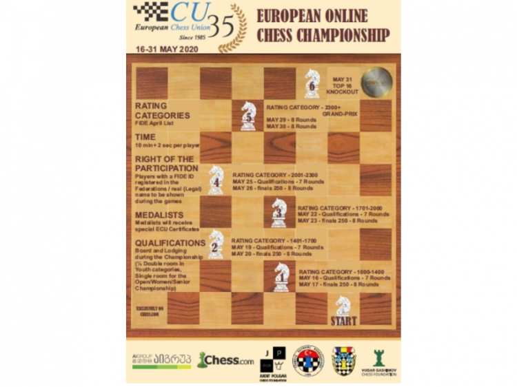 Mayın 16-dan 31-dək Avropa Şahmat İttifaqının təşkilatçılığı ilə keçiriləcək onlayn Avropa çempionatında iştirak etmək üçün 49 ölkədən 1000-dən çox şahmatçı qeydiyyatdan keçib.