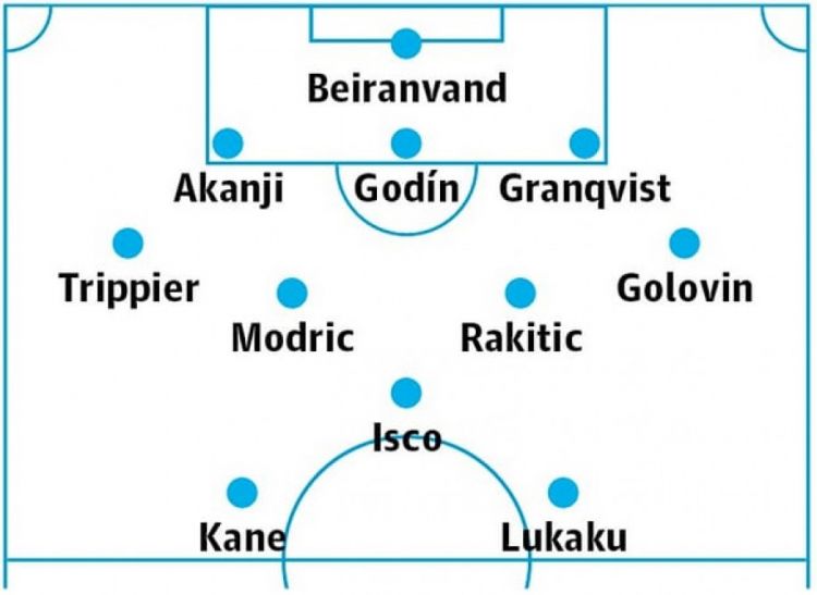 NUHÇIXAN xəbər verir ki, İngiltərənin “The Guardian” qəzetinin oxucularının səsverməsi nəticəsində, dünya çempionatının qrup mərhələsinin simvolik heyətində qapıçılardan Əlireza Beyranvand (İran), müdafiəçilərdən Manuyel Akanci (İsveçrə), Dieqo Qodin (Uruqvay), Andreas Qrakvist (İsveç), yarımmüdafiəçilərdən Kiran Treppyer (İngiltərə), İsko (İspaniya), Luka Modriç, İvan Rakitiç (hər ikisi - Xorvatiya), Aleksandr Qolovin (Rusiya), hücumçulardan isə Hari Keyn (İngiltərə) və Romelu Lukaku (Belçika) yer alıblar.
