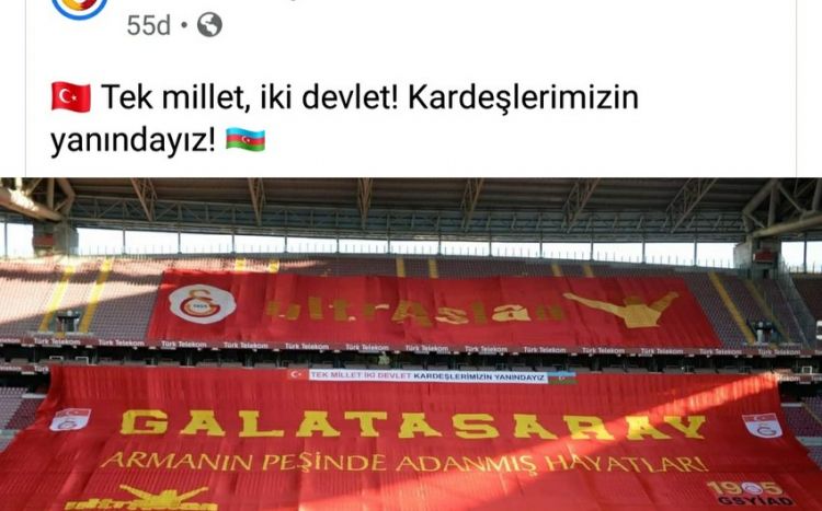 Türkiyənin "Qalatasaray" futbol klubu cəbhə bölgəsində baş verən hadisələrlə bağlı Azərbaycana dəstək olub.