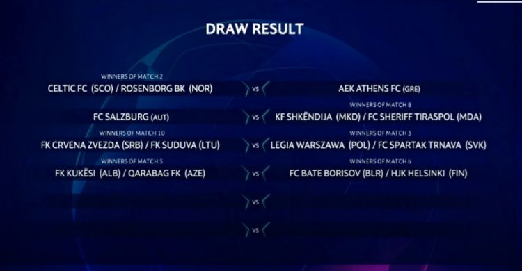 Püşkə əsasən, “Qarabağ” klubu BATE (Belarus)–“Helsinki” (Finlandiya) cütünün qalibi ilə qarşılaşacaq.