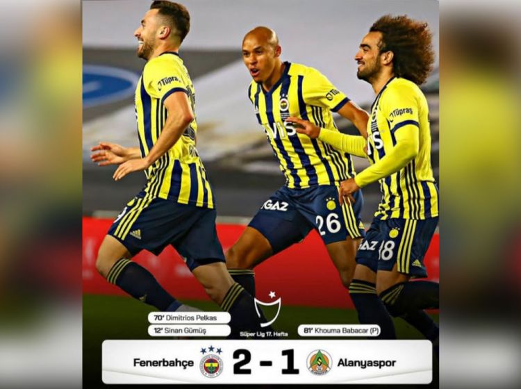 NUHÇIXAN İnformasiya Agentliyi xəbər verir ki, gərgin keçən görüşdə İstanbul təmsilçisi rəqibini 2:1 hesabı ilə qalib gəlib. “Fənərbağça”nın qollarını Sinan Gümüş (12) və Dimitrios Pelkas (70) vurublar. Alanya klubunun heyətində isə Kouma Babakar fərqlənib.