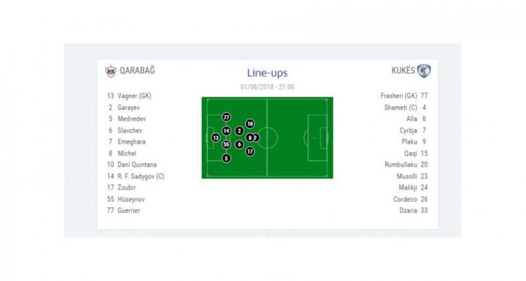 Futbol üzrə UEFA Çempionlar Liqasının ikinci təsnifat mərhələsinin saat 21:00-da başlayacaq cavab matçında qarşılaşacaq “Qarabağ” – “Kukesi” görüşü üçün start heyətlər açıqlanıb.