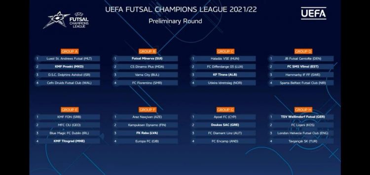 Futzal üzrə UEFA Çempionlar Liqasında ilkin mərhələnin püşkü atılıb.