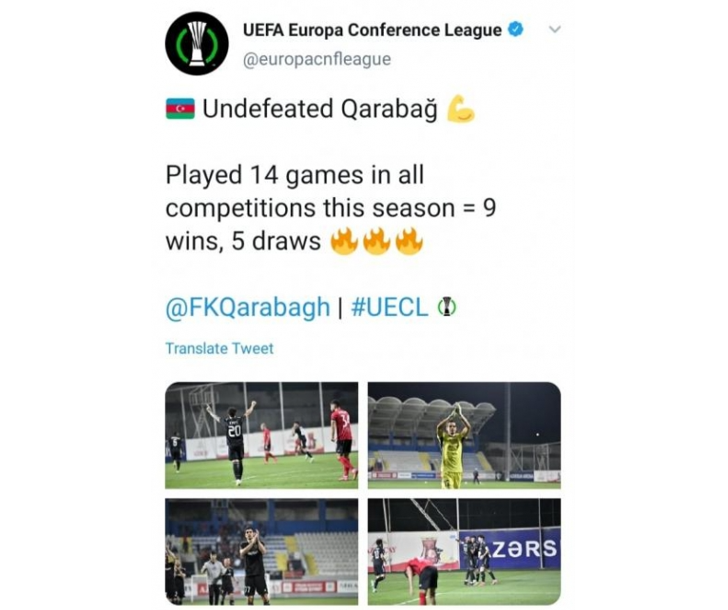 UEFA Konfrans Liqasının “Twitter” səhifəsi Ağdamın “Qarabağ” futbol klubu ilə bağlı paylaşım edib.