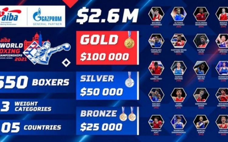 Qeyd edək ki, ilk dəfə 13 çəki dərəcəsində keçiriləcək dünya çempionatında 105 ölkədən 650 boksçunun iştirakı gözlənilir. 2,6 milyon dollar mükafatı fondu olacaq mundialda çempion 100 000 dollar qazanacaq. İkinci yerin sahibi 50, üçüncü pilləni tutacaq boksçu 25 min dollar mükafat alacaq.