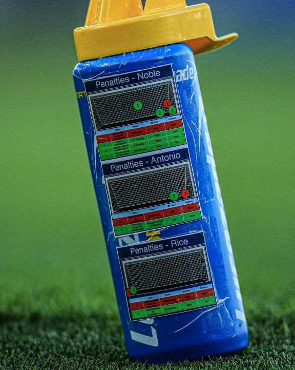 İngiltərəli qapıçı rəqib komandanın heyətində 11 metrlik cərimə zərbələrini yerinə yetirən futbolçuların topu çərçivənin hansı hissələrinə vurmaları ilə bağlı infoqrafik məlumatları su şüşəsinin üzərinə yerləşdirib.