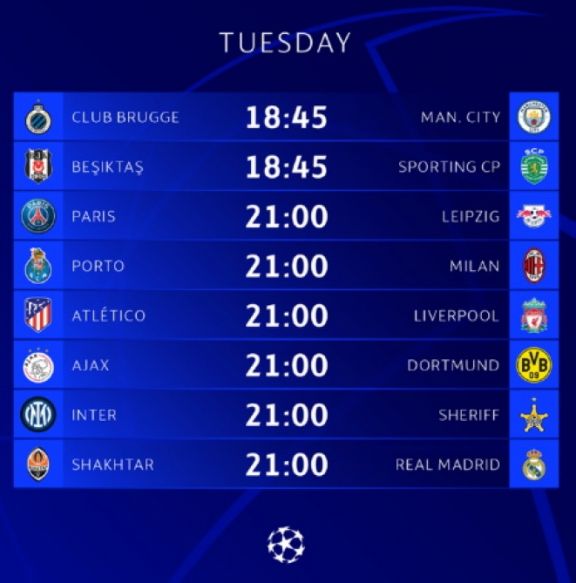 Türkiyənin turnirdə yeganə təmsilçisi “Beşiktaş” səfərdə Portuqaliyanın “Sportinq” komandası ilə üz-üzə gələcək. Hazırda hər iki komanda hərəyə bir xalla qrupda 3-4-cü yerləri bölüşdürür. C qrupunun digər qarşılaşmasında Niderland təmsilçisi “Ayaks” doğma meydanda Almaniyanın “Borussiya Dortmund” klubu ilə vahid liderlik uğrunda mübarizə aparacaq.