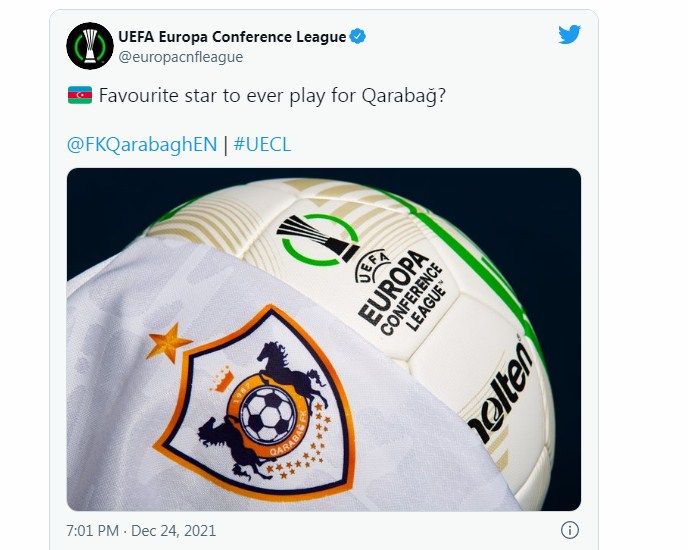 UEFA Konfrans Liqasının rəsmi tviter hesabı növbəti dəfə "Qarabağ" klubu haqqında paylaşım edib.