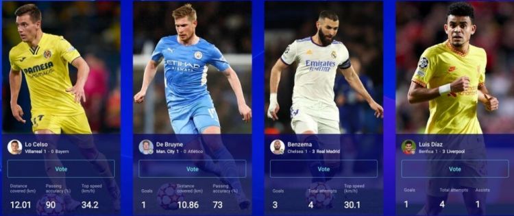 UEFA Çempionlar Liqasında dörddəbir final mərhələsinin ilk oyunlarından sonra həftənin ən yaxşı futbolçusunun adı açıqlanıb.